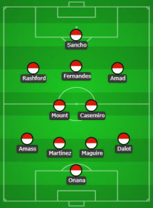 After returning to training this week, Kobbie Mainoo, who was Casemiro’s regular midfield partner towards the end of the previous season, may come off the bench. Mason Mount, who performed well on his trip throughout the country, is probably going to start at number eight.