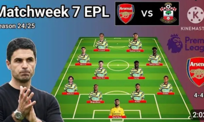 Predicted Arsenal lineup for away game against Southampton (4-3-3) in normal formation with Ødegaard and Merino returning from injury. Arsenal and Southampton face off...