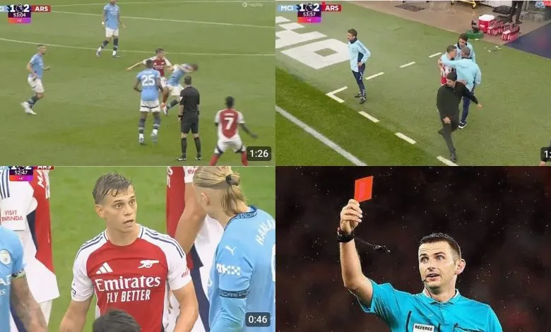 The Belgian star impeded Bernardo Silva before launching the ball away after the referee’s signal, and Michael Oliver promptly showed him a red card. The Arsenal players were in a state of disbelief as they protested the decision, with their teammate being sluggish to depart the pitch.